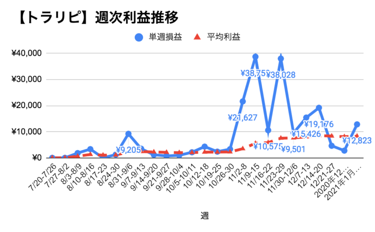 トラリピ利益週次推移
