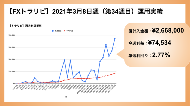 2021年3月8日〜3月14日 34週目の運用実績