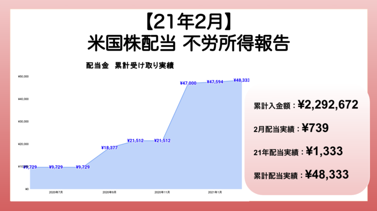21年2月 30代サラリーマンの配当投資不労所得報告まとめ