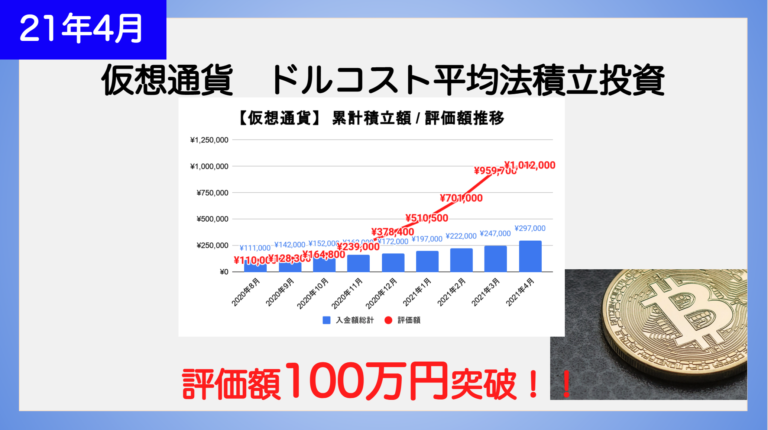 4月はビットコインが暴落したこともあり3月末に比べて利回りは低下しました。暴落=積み立てチャンスということで毎月2.5万の投資ですが今月は先々投資予定分を前借りして5万円分買い付けました。