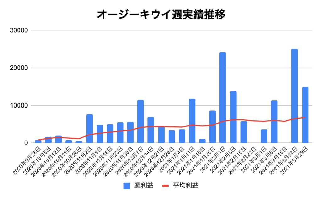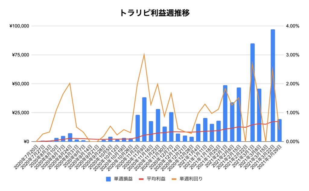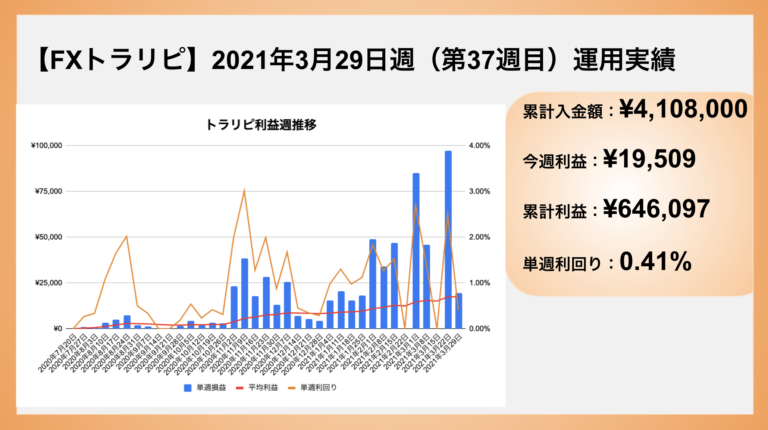 【FXトラリピ】2021年3月29日週(第37週目)週間運用実績報告