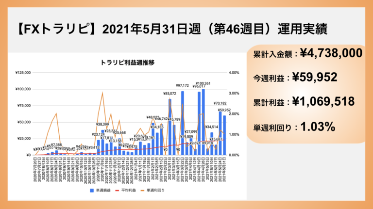 トラリピ:2021年5月31日〜 46週目の運用実績