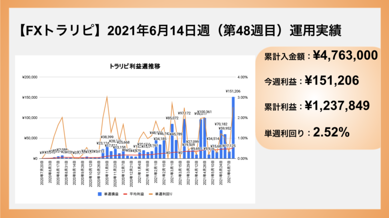 トラリピ:2021年6月14日〜 48週目の運用実績
