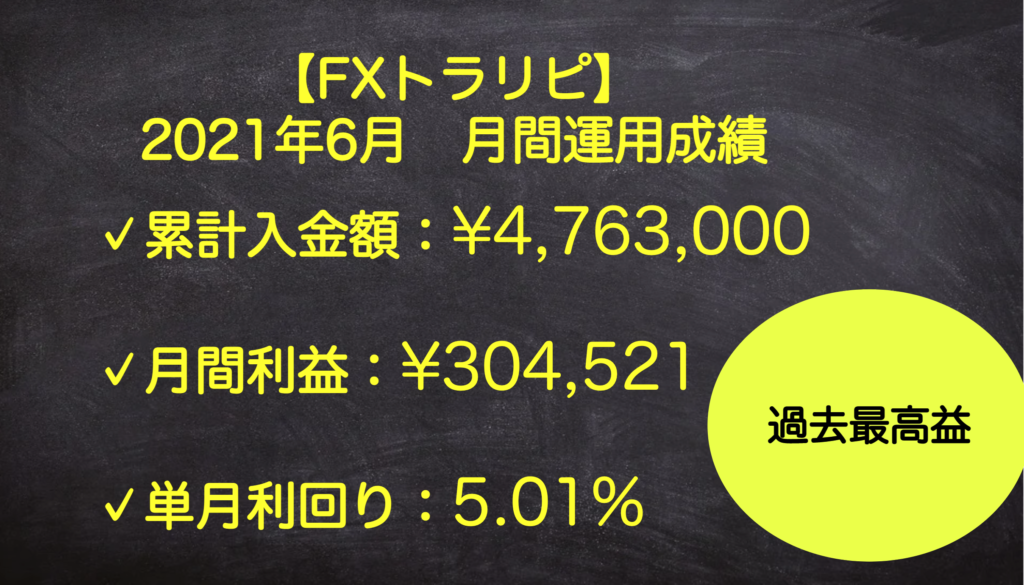 【FXトラリピ】21年6月 セミリタイアを目指す30代サラリーマンの不労所得報告