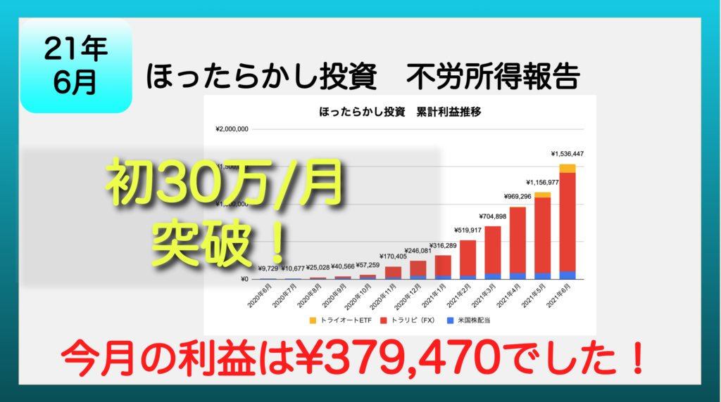 【ほったらかし投資】21年6月不労所得報告 ¥379,470の利益でした。