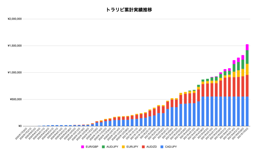 【FXトラリピ】2021年7月5日〜 51週目の運用実績 利益は¥204,170でした
