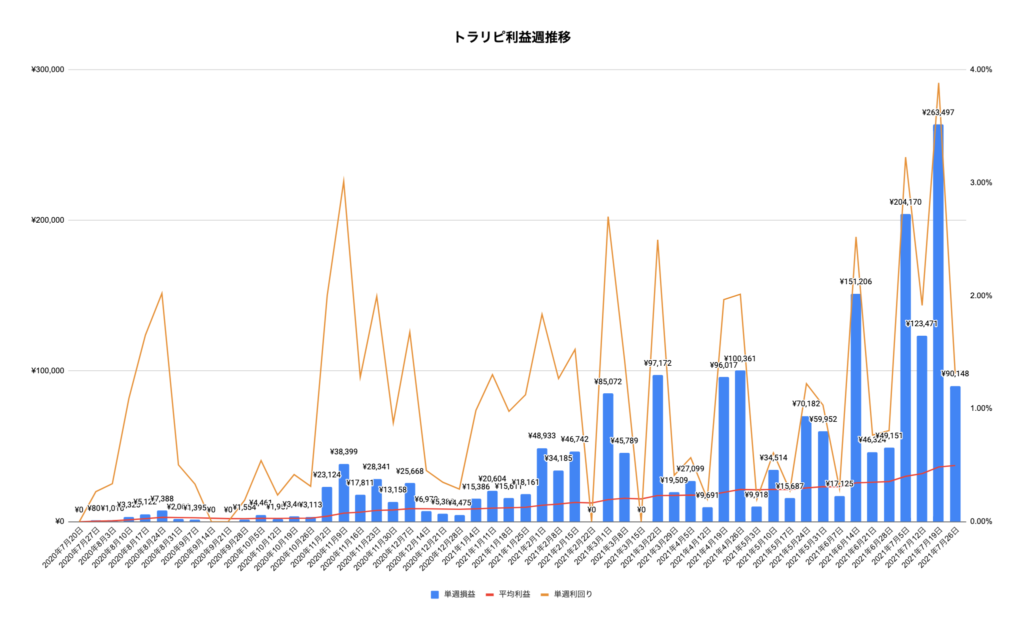 トラリピ:2021年7月26日〜 54週目の運用実績