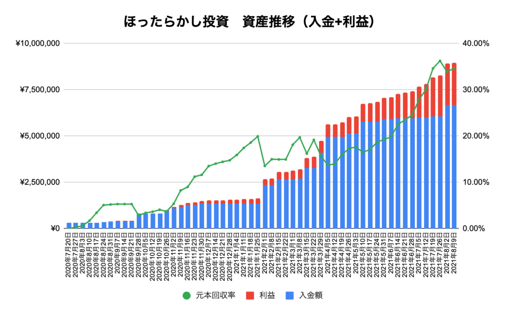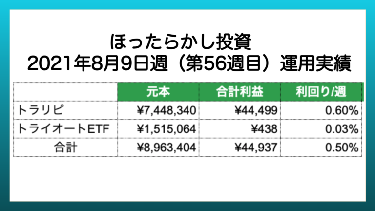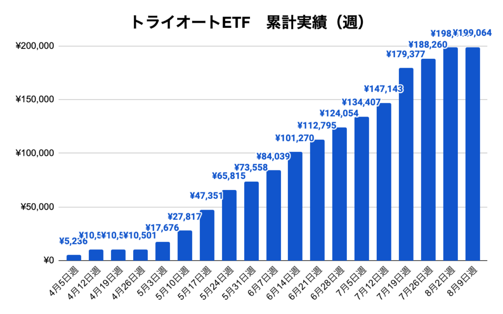 2週続けてうーんという利益でした・・・6月、7月がかなり好調だったのでそれと比較してしまうとすっごく物足りない利益です。