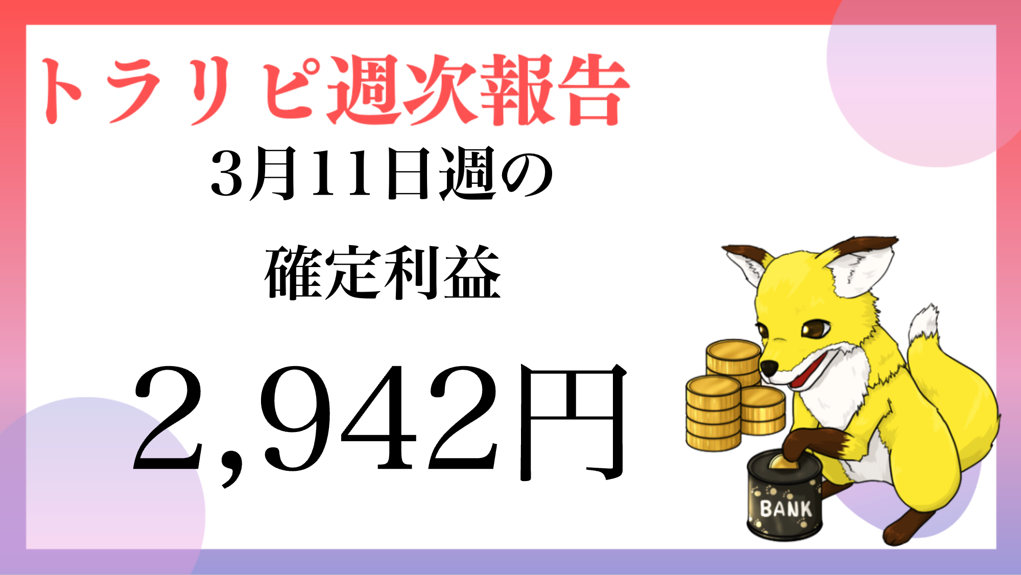 トラリピの週間運用実績詳細はこちらの記事にまとめています。通貨ペア別の利益など詳細をまとめておりますので、興味あるかたはぜひご確認を!!