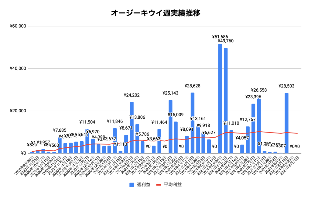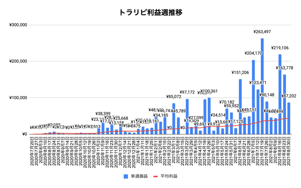 トラリピ:2021年8月30日〜 59週目の運用実績