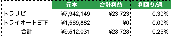 | 元本 | 合計利益 | 利回り/週 |