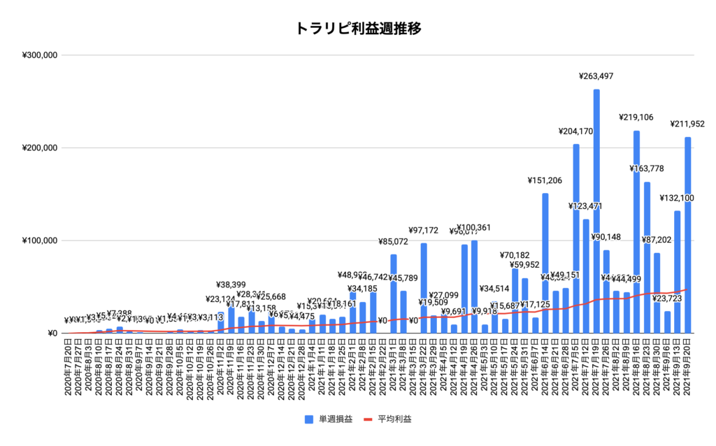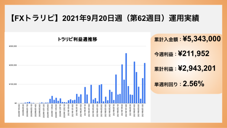 トラリピ:2021年9月20日〜 62週目の運用実績