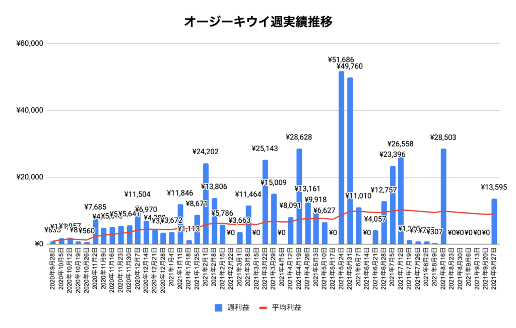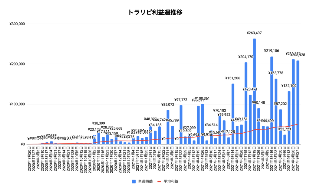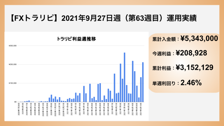 トラリピ:2021年9月27日〜 63週目の運用実績