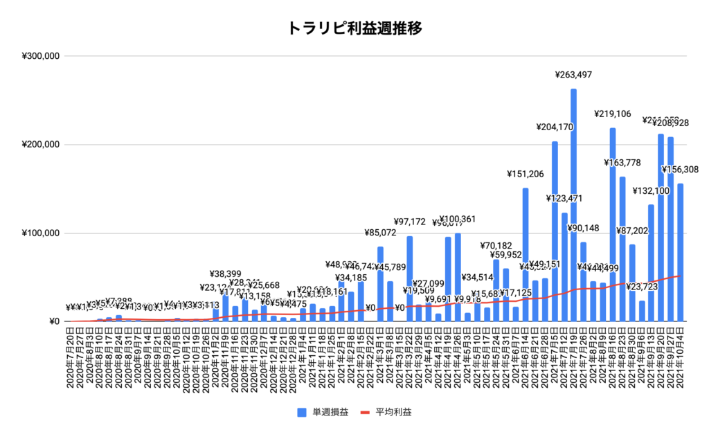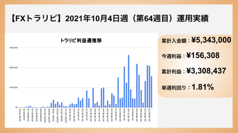 トラリピ:2021年10月04日〜 64週目の運用実績