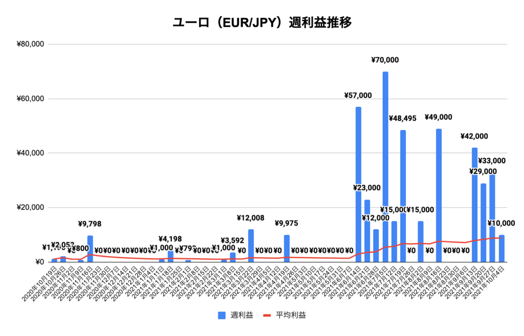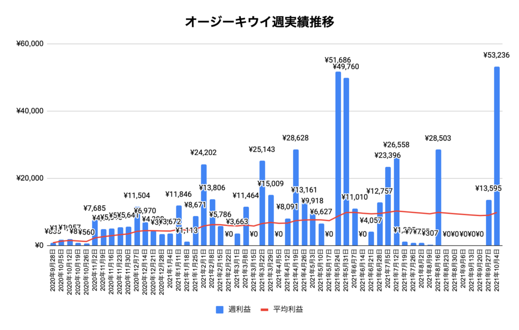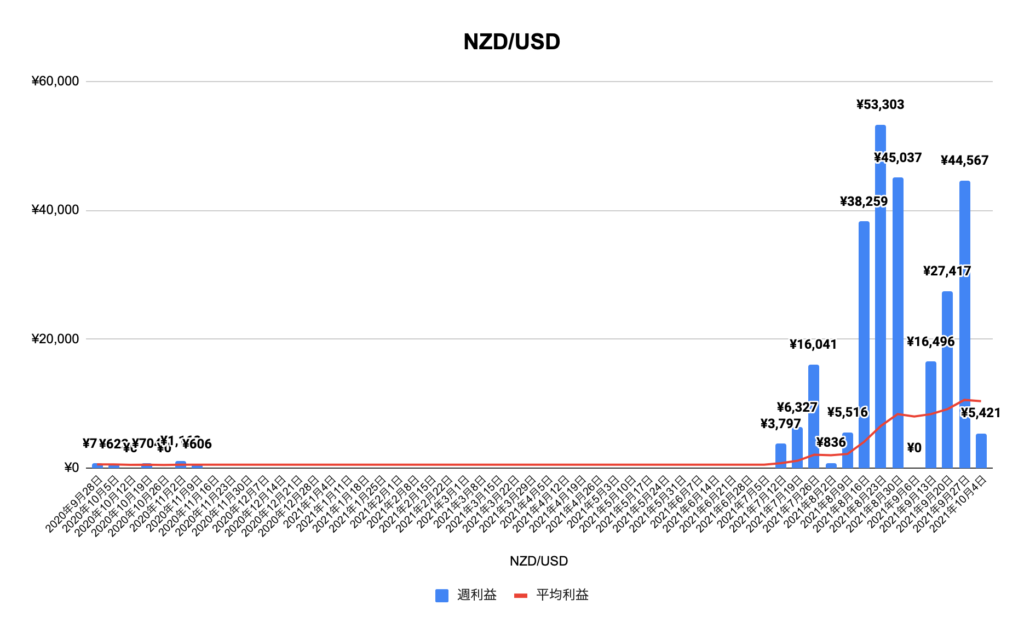 これで4週連続で10万超えの利益を叩き出しました!今週はこれまでずっとパワーをためていたオージーキウイが利益を出してくれたことに加えて先週に引き続きEUR/GBPが8万超えと最高のパフォーマンスを出してくれました。クロス円通貨は若干の決済と少しおとなしめでした。10月は前半からいい形で利益が出ているのでこの状態が続いてくれると嬉しいです。