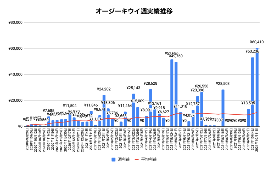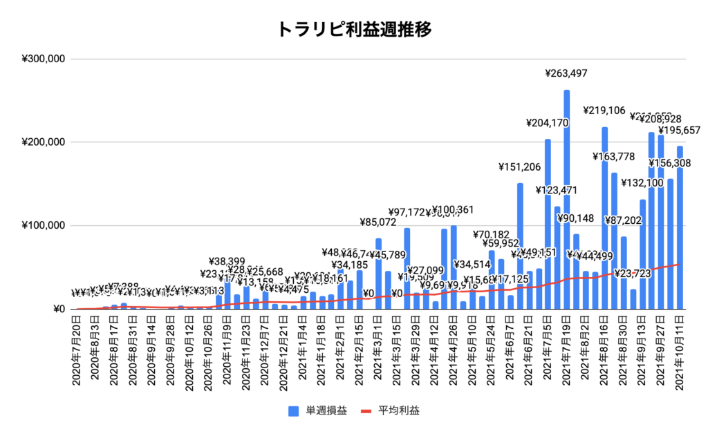 トラリピ:2021年10月11日〜 65週目の運用実績