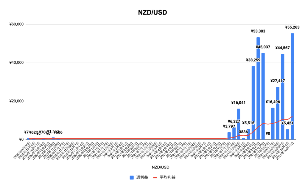 ここ1ヶ月くらい10万超えの利益が続いており非常にいいペースです。1つの目標としている週125,000円も5週連続クリアしております。入金+複利で着実に利益が膨らんでいます。だいぶ安定して稼げるようになってきたので今後は再投資ペースを落としてロスカットリスクを下げに行こうと思います。