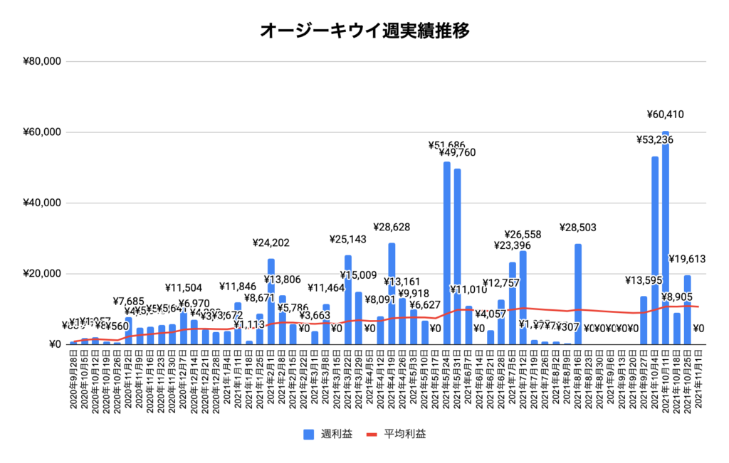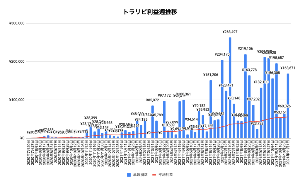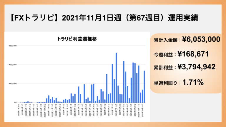 トラリピ:2021年11月1日〜 68週目の運用実績