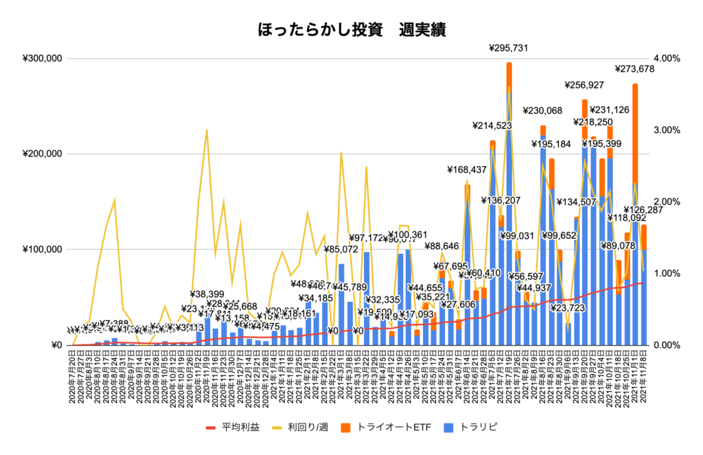 【ほったらかし投資】 2021年11月8日週 運用報告 利益は¥126,287でした