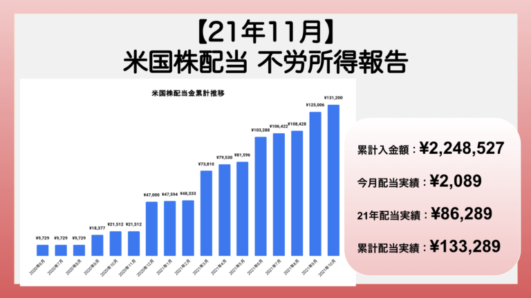 21年11月 30代サラリーマンの配当投資不労所得報告まとめ