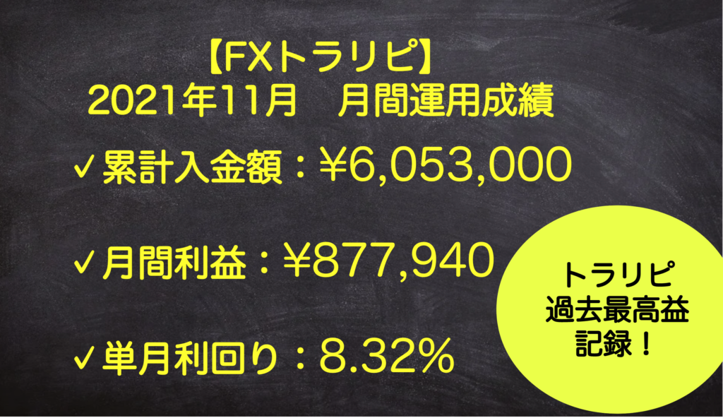 【FXトラリピ】21年11月セミリタイアを目指す30代サラリーマンの不労所得報告