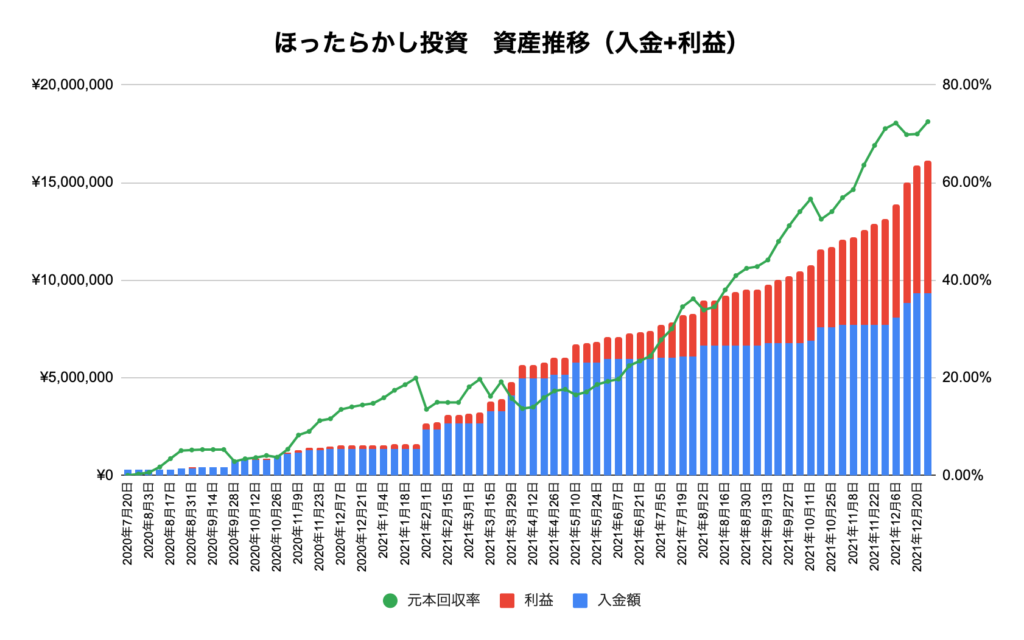 今年の下半期から単月の利益がかなり上がってきているので元本回収率が急角度で上昇していきました。来年には元本回収率100%行きそうな気がしています。