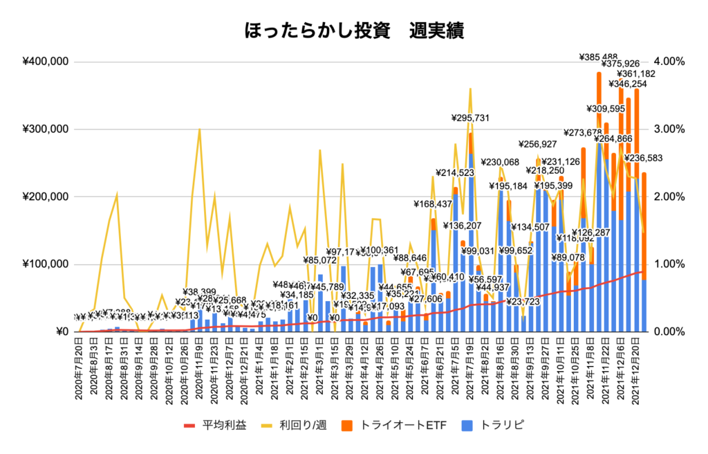 | 12月21日週 | ¥1,542,458 | ¥5,388 | 0.35% |