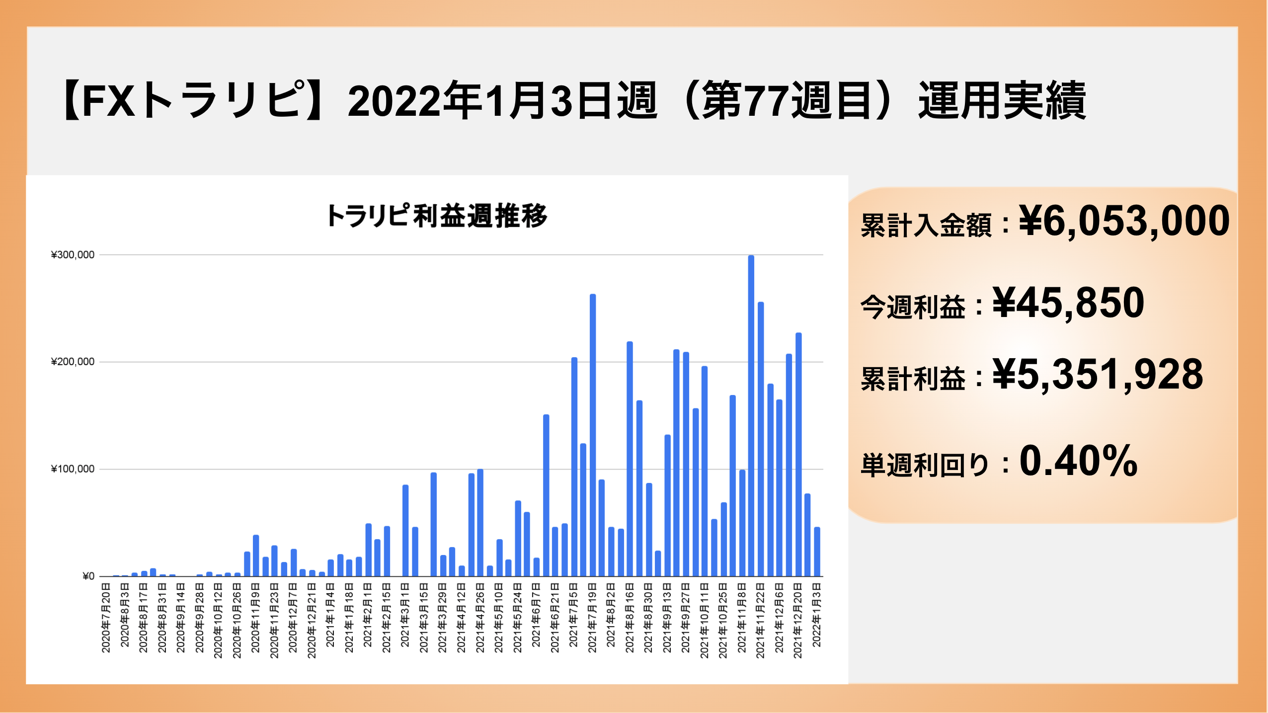 トラリピ:2022年1月3日〜 77週目の運用実績