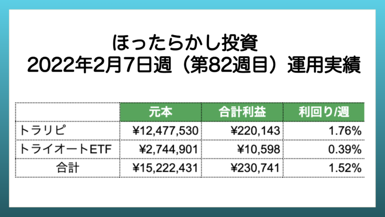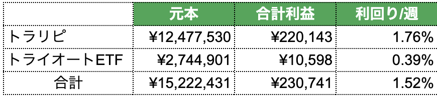 | 週 | 元本 | 合計利益 | 利回り/週 |