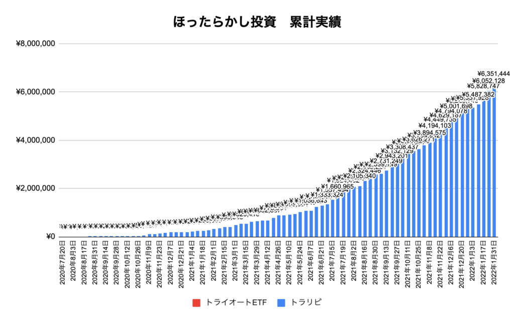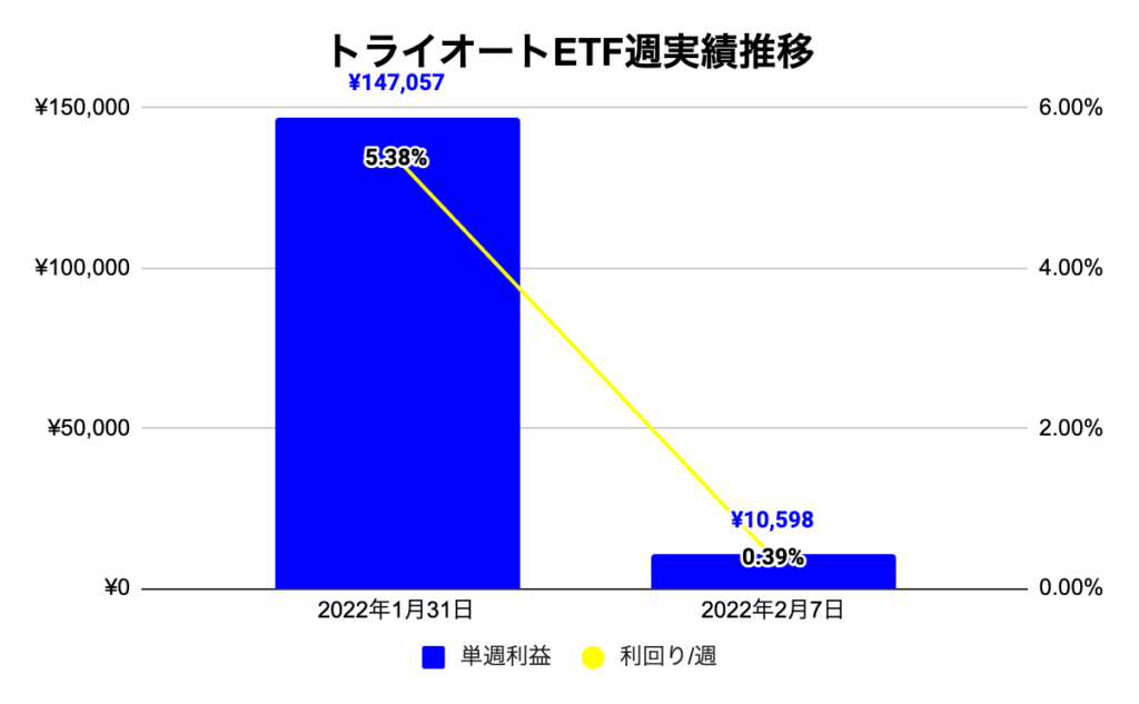 トライオートETFは損切りで昨年利益が吹っ飛んだので昨年利益はグラフから消して再スタート後の実績を載せていきます。