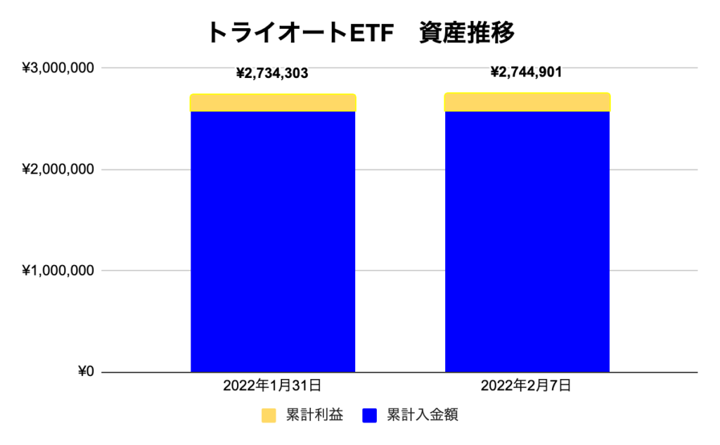 こちらはトライオートETFの累計利益推移です。まだ再スタートしたばかりなのでグラフが寂しいですがコツコツ運用していきます。