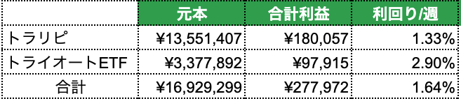 元本(入金+利益)週利益利回り/週
