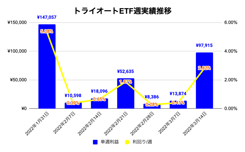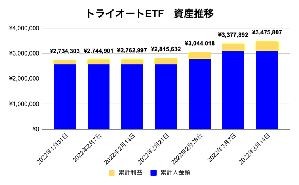 【ほったらかし投資】 2022年3月14日週 運用報告 利益は¥277,972でした