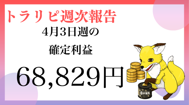 今週は爆益!!とまで行きませんでしたが満足の行く利益です。今年は年間300万、月25万、週6万の利益が1つの目標なので今週も目標クリアで着実に利益が積み上がってます。今月末は四半期ボーナスが支給されるのである程度まとまった額の入金ができそうです。さらにトラップ追加して利益がでるように運用していきたいと思います。