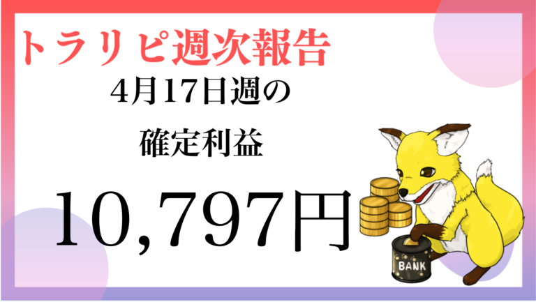 今週はまさかの利益が1万円台。。。あまりにも決済通知がこなすぎて運用しているのを忘れるかと思うくらいでした。そろそろ円高ターンが回ってきてクロス円通貨が大爆発してくれるのを期待したいです。