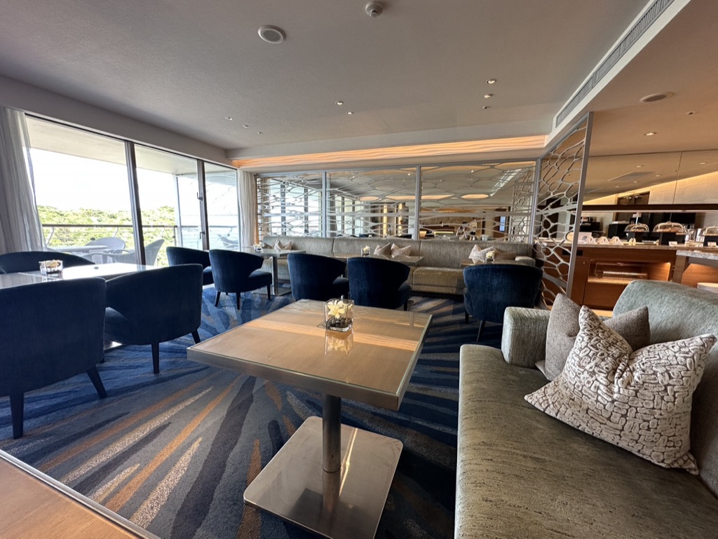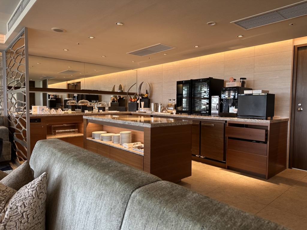 ラウンジでは時間別で軽食やスイーツなど食べ物に加えて、ソフトドリンクやアルコールも無料サービスで頂くことができました。