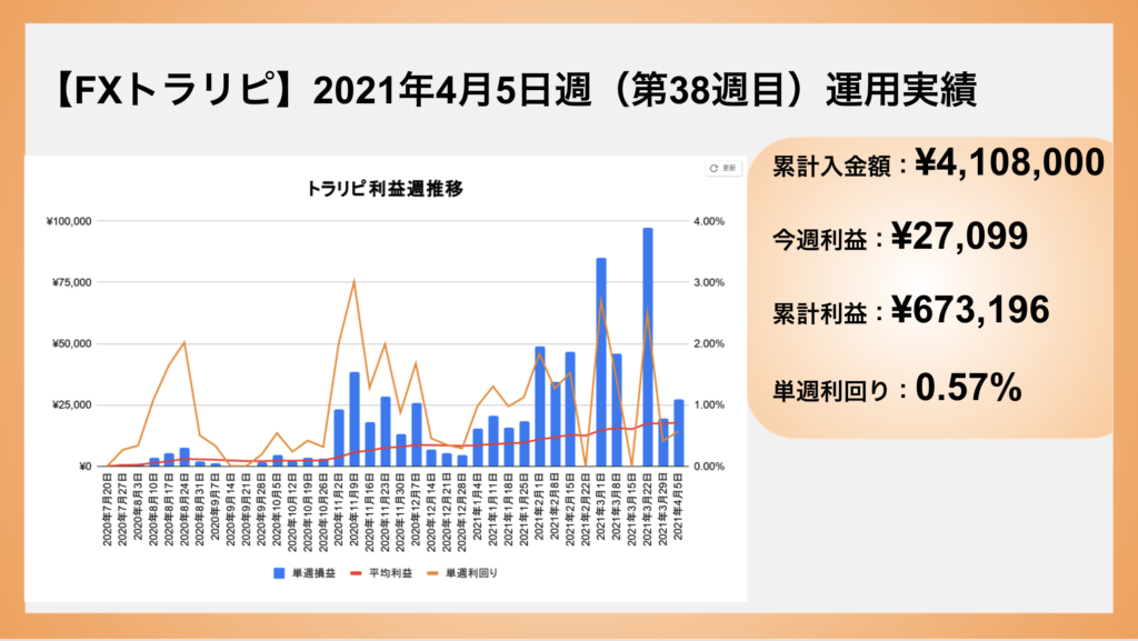 【FXトラリピ】2021年4月5日〜4月11日 38週目の運用実績