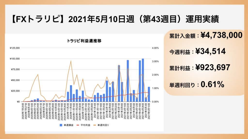 【FXトラリピ】2021年5月10日〜 43週目の運用実績