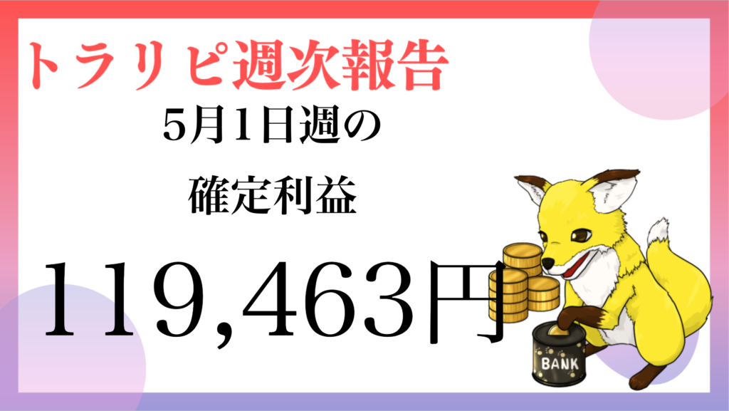 【FXトラリピ】2023年5月1日週の運用実績 利益は¥119,463でした。