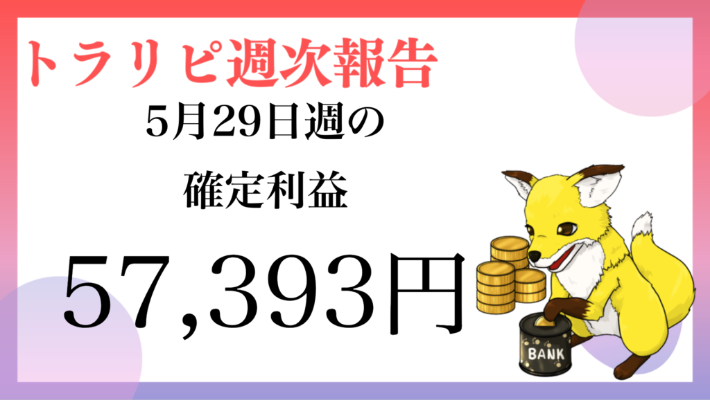 【FXトラリピ】2023年5月29日週の運用実績 利益は¥57,393でした。
