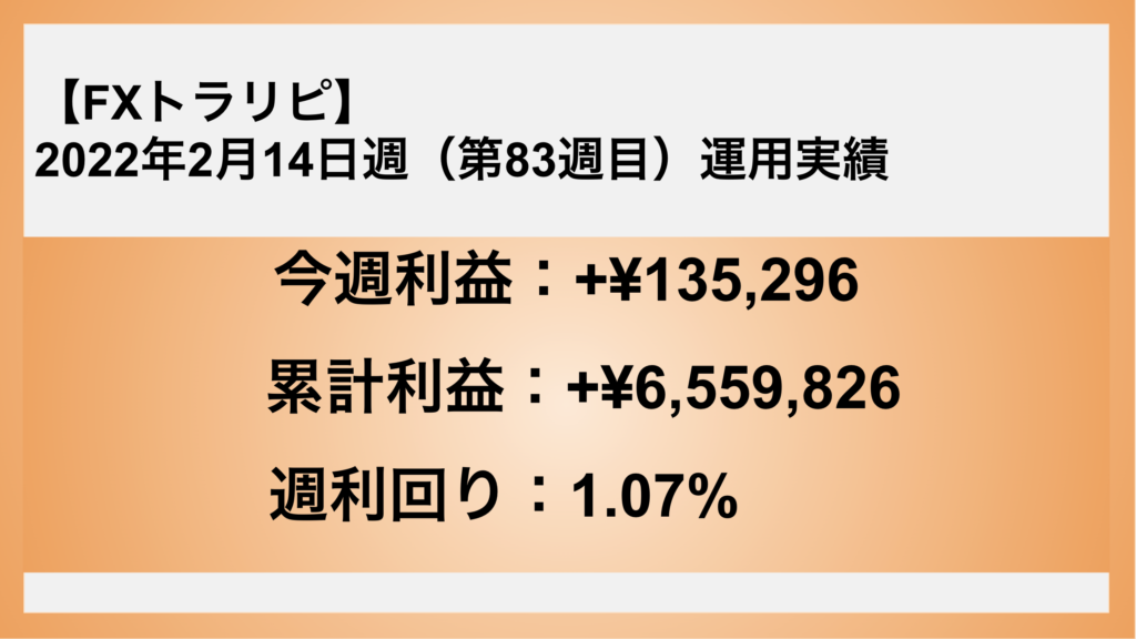【FXトラリピ】2022年2月14日〜 83週目の運用実績 利益は¥135,296でした