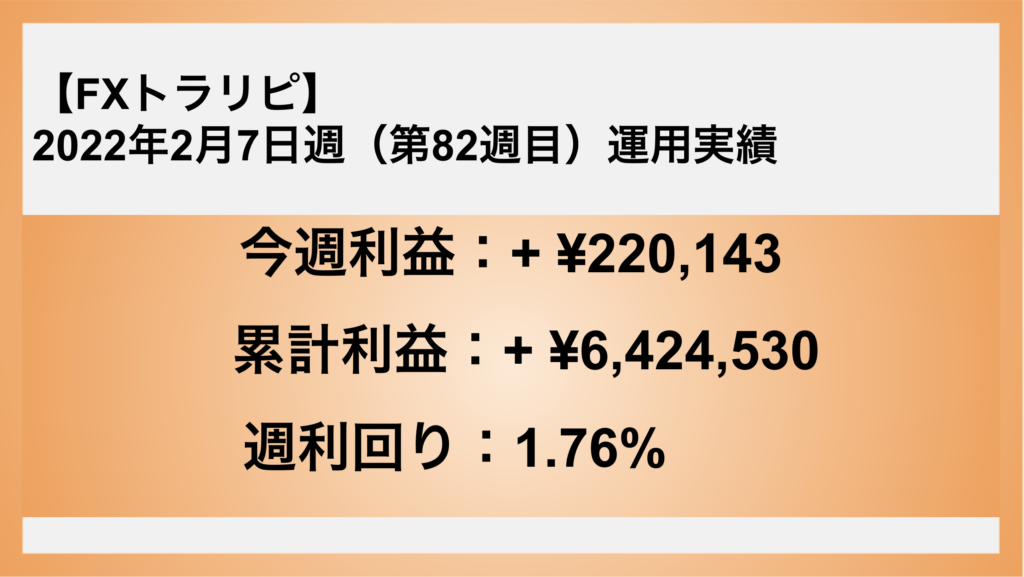 【FXトラリピ】2022年2月7日〜 82週目の運用実績 利益は¥220,143でした