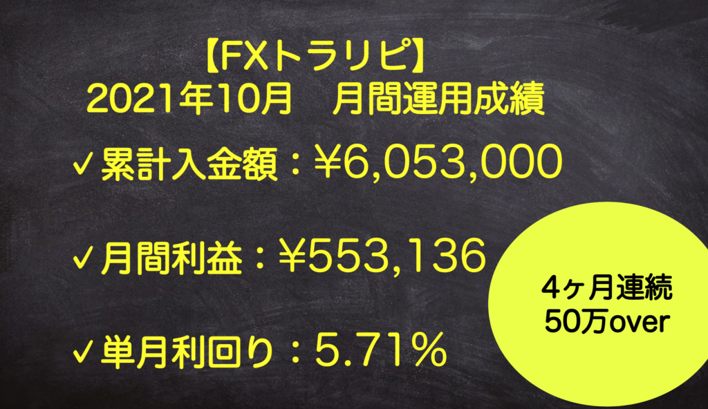 【FXトラリピ】21年10月セミリタイアを目指す30代サラリーマンの不労所得報告