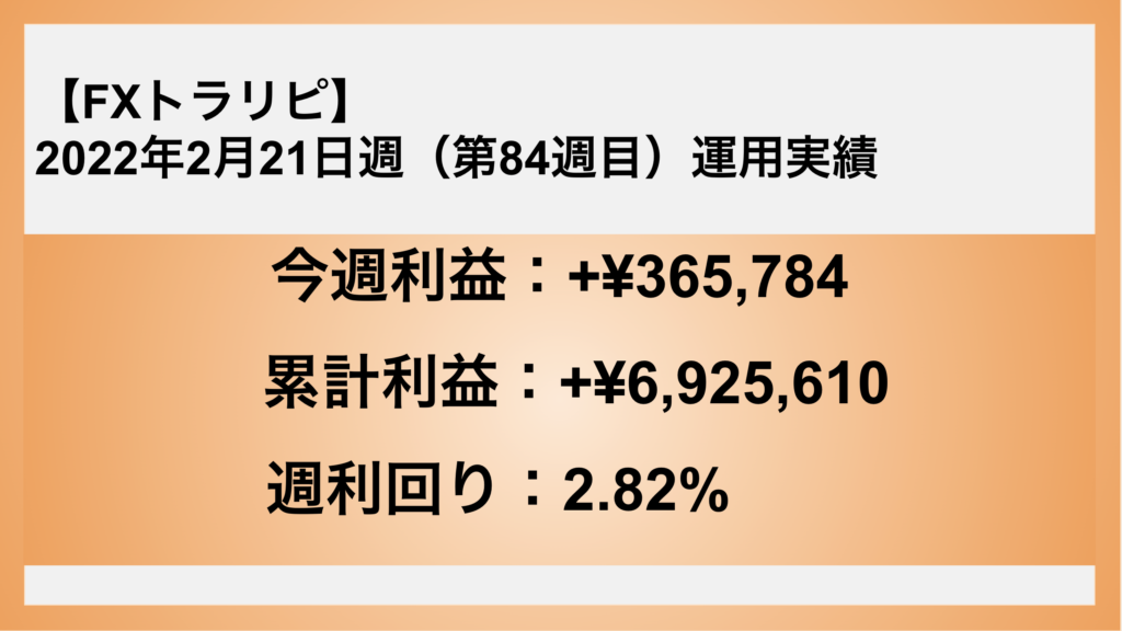 【FXトラリピ】2022年2月21日〜 84週目の運用実績 利益は¥365,784でした