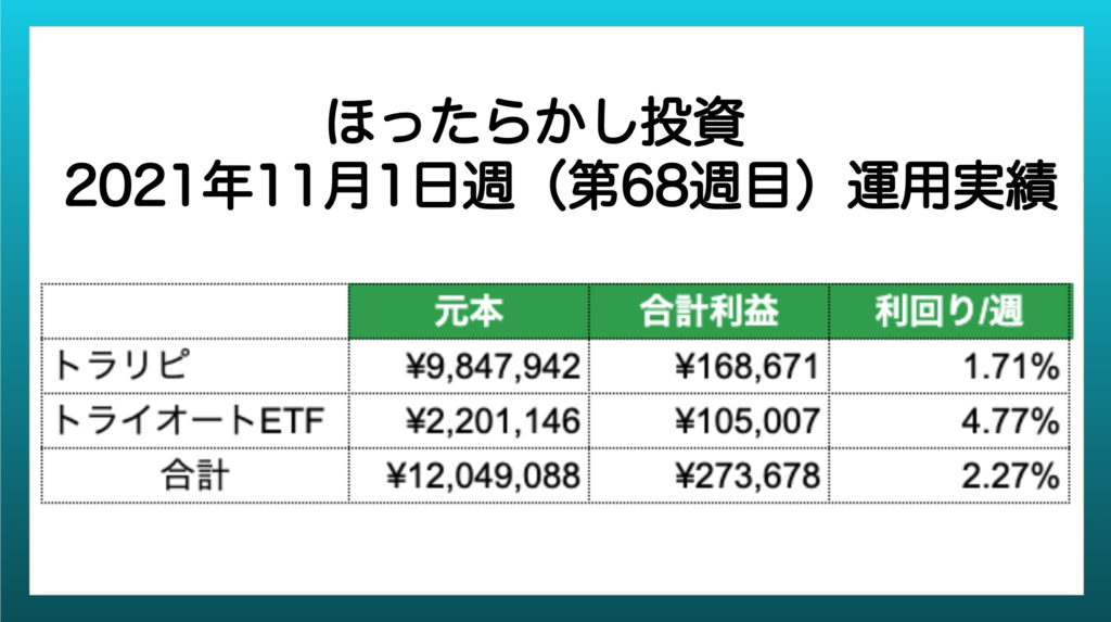 【ほったらかし投資】 2021年11月1日週 運用報告 利益は¥273,678でした