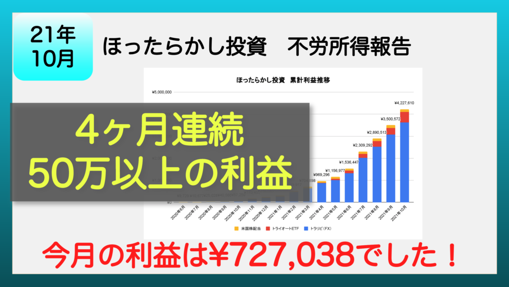 【ほったらかし投資】21年10月不労所得報告¥727,038の利益でした。