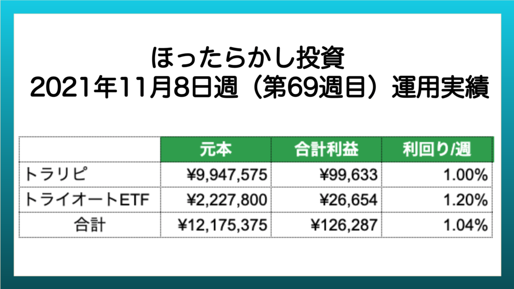 【ほったらかし投資】 2021年11月8日週 運用報告 利益は¥126,287でした