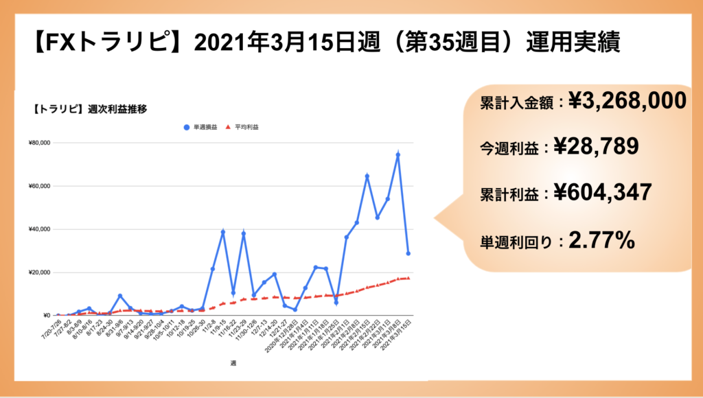 【FXトラリピ】2021年3月15日週(第35週目)週間運用実績報告