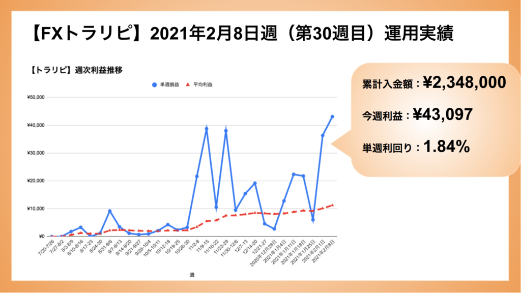 【FXトラリピ】2021年2月8日週(第30週目)週間運用実績報告