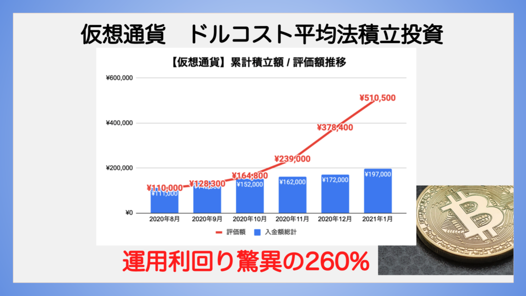 【仮想通貨をドルコスト平均法で積み立てる】21年1月 運用実績報告